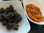 セルフサービスで孫が運んで来た物が、トッポギと他にスンデというものらしいけど今まで見たことが無いので「豚肉の味がしてモチモチして美味しいけど、スンデって何なの?」血が混じってると言われ聞かなきゃ良かったと思ったら、テレビで豚の腸詰だと言ってたので、また食べても良いかなと思う代物でした。