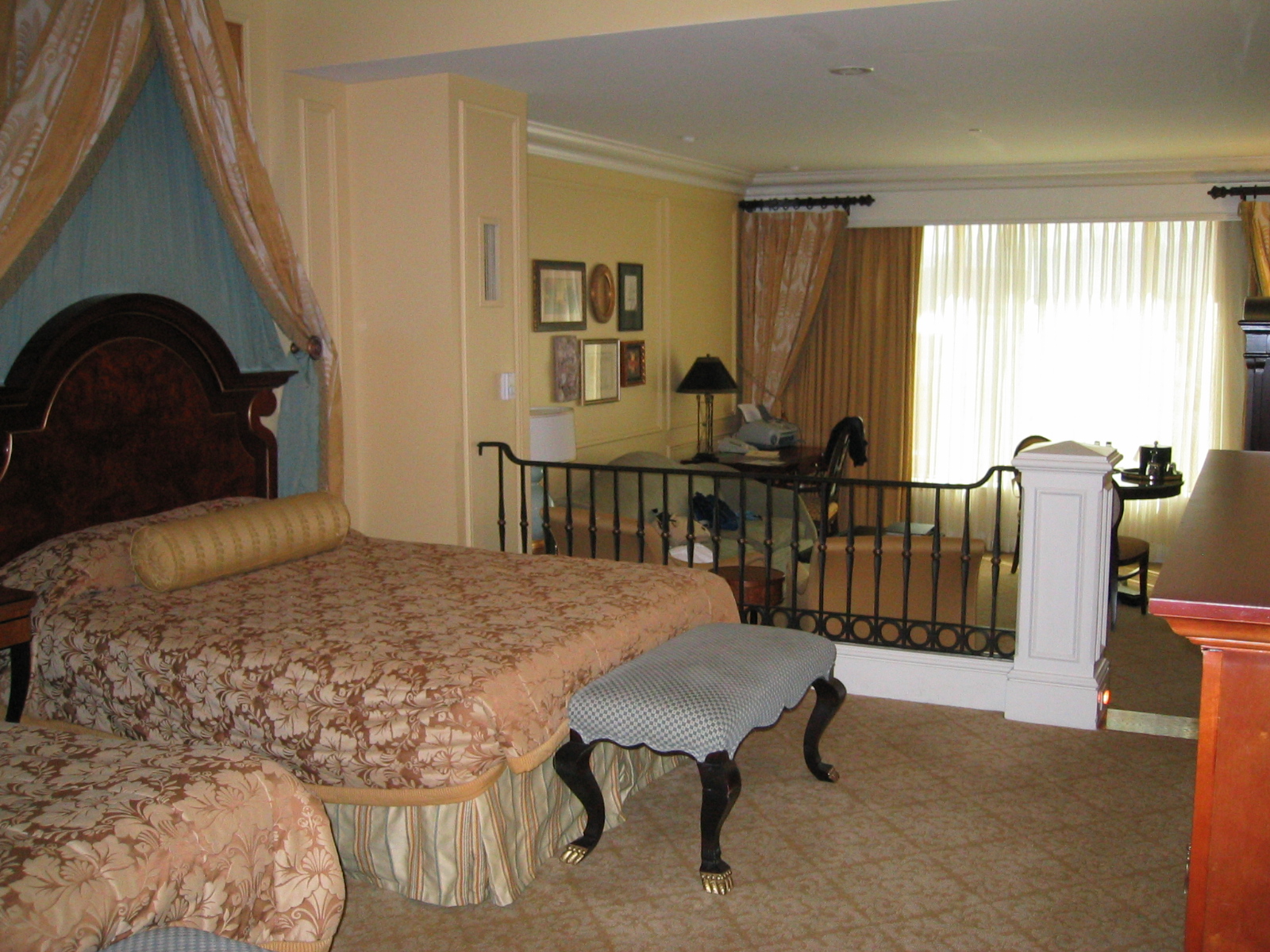 ベットの向こう側へ行くのに2段ほどの階段付きで、お洒落なリビングって感じだから、少しだけセレブ気分に浸れた記憶が甦って来ました。ホテルの浴室も泊まる国に依りますが、シャワー室が別に付いてたり、洗面所とかにも気配りが有ったりで、豪華さを求めるならラスベガスに行くべきだと思います。
